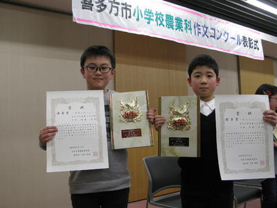 本日,農業科作文コンクールの表彰式が行われました。本校からは,3年の佐藤さんと4年の平林さんが優秀賞を受賞しました。