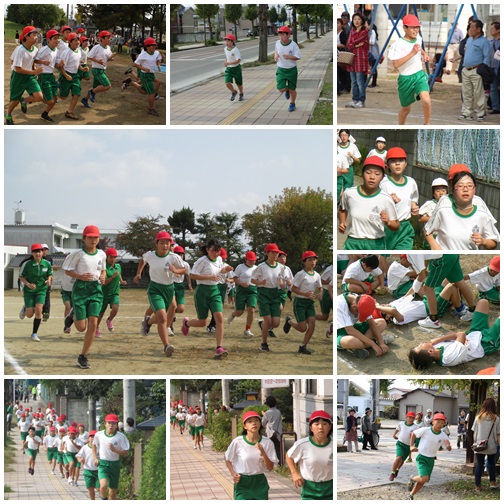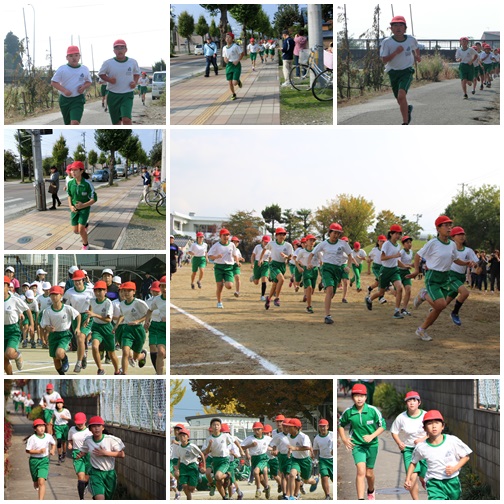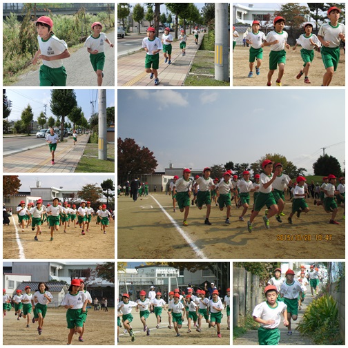 2015年10月21日 07時52分 秋晴れの中マラソン記録会を実施しました。これまで児童は、朝の活動や体育の時間で自分の目標に向かって真剣に練習を積み重ねてきました。さらには、全体の目標『自分に勝つ』を合言葉に、最後まで諦めない走りがたくさん見られました。自己ベスト目指して激走する児童。苦しくても一歩一歩確実に歩みを進める児童。その姿に感動し声援も次第に大きくなっていました。そうした自分に負けない姿を今後の学校生活に生かし、たくましく・力強く成長していくことを願いたいものです。 《たくさんのご声援ありがとうございました。》