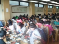 2014年5月22日 13時49分 松島湾内遊覧を終え、次の見学は、五大堂・瑞巌寺です。船にようこともなく、子どもたちも元気に五大堂に向かいました。見学の後は、おいしい昼食が待っていました。