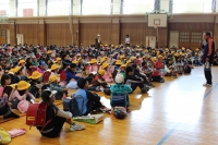 今日は、18班に分かれて、班長や班のメンバーを確認した後、全体的な指導を行い、高学年の班長を中心に、それぞれの地区に向けて先生方とともに集団下校をしました。児童は、整然と集団下校をすることができ、万が一の時のためのよい訓練となりました。