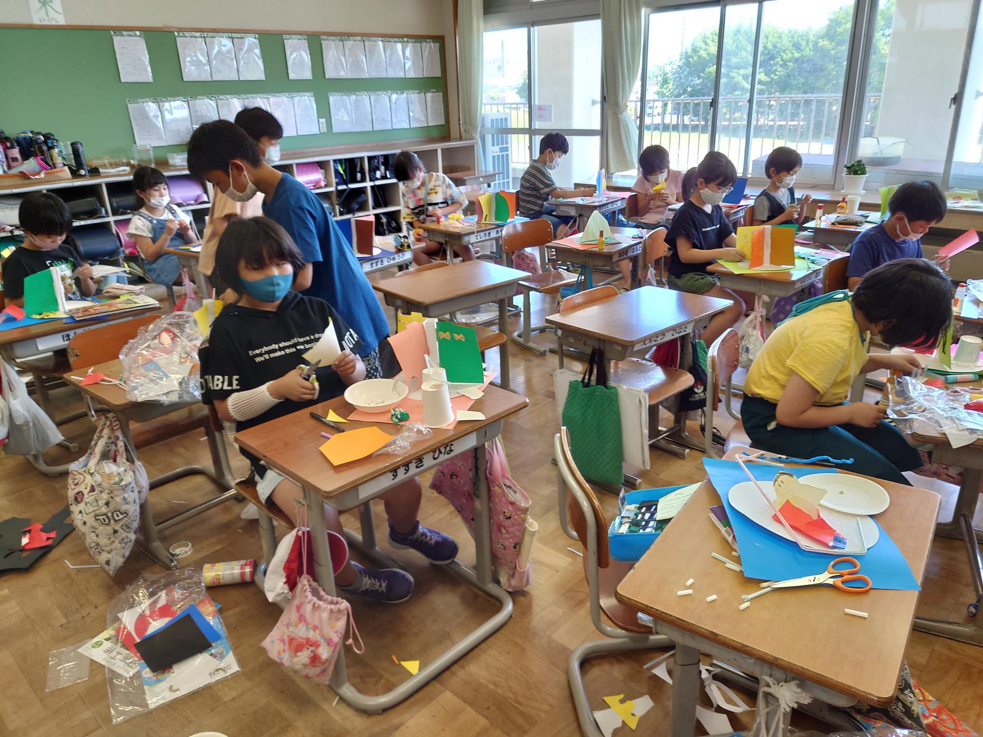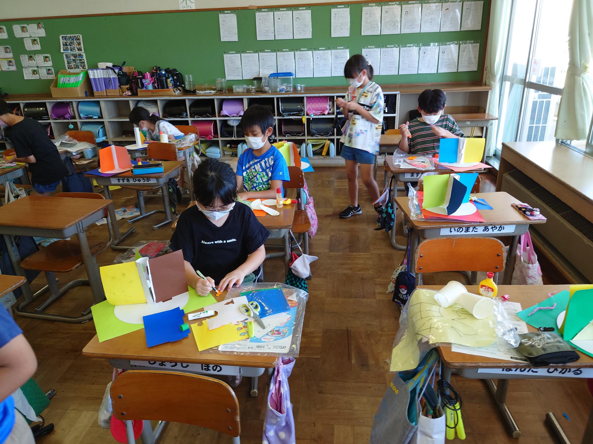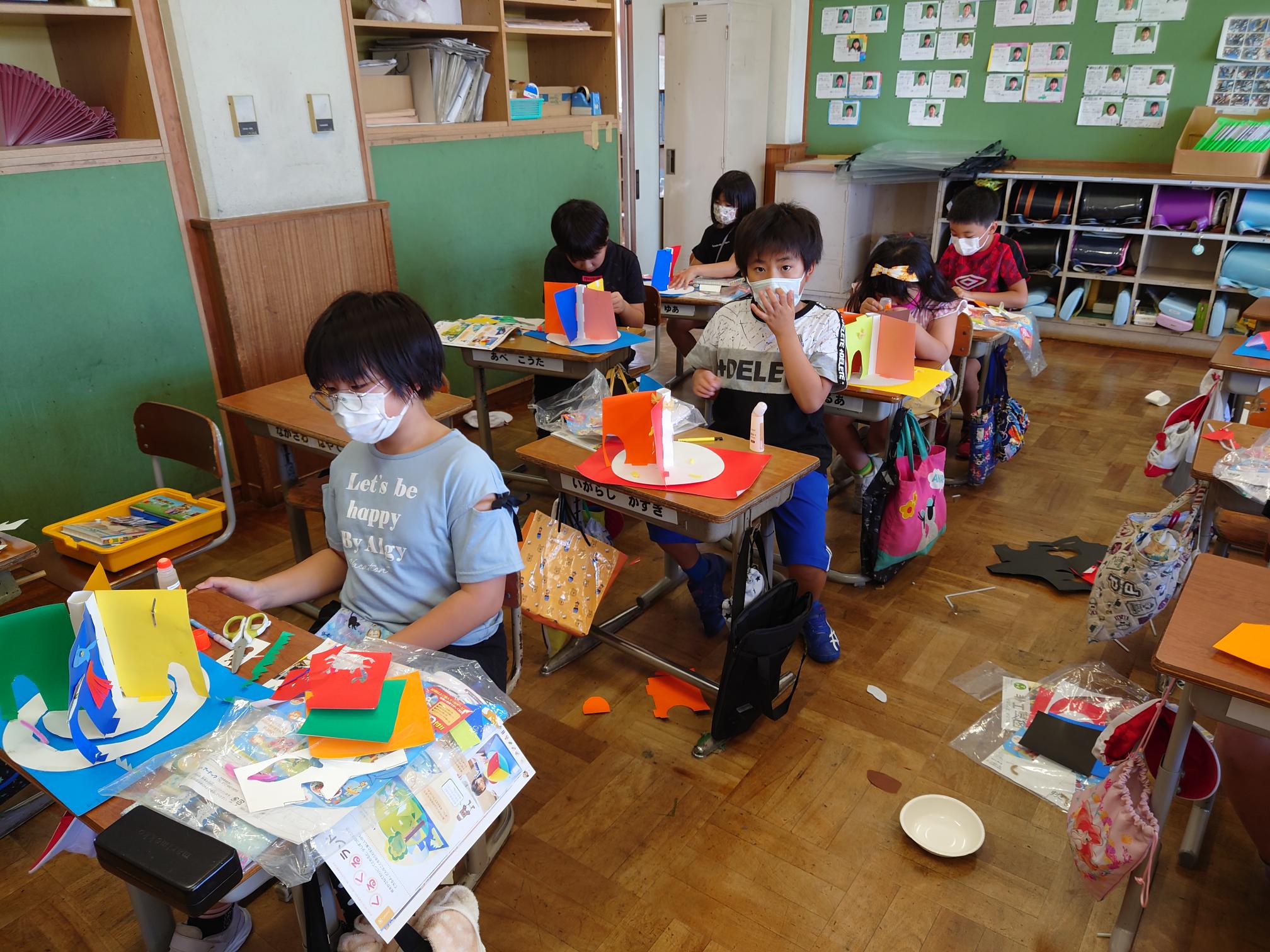 3年生は,「くるくるランド」で回転すると場面が変わる作品を作っています。