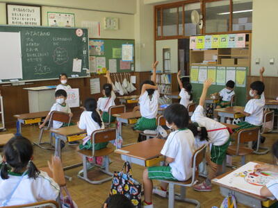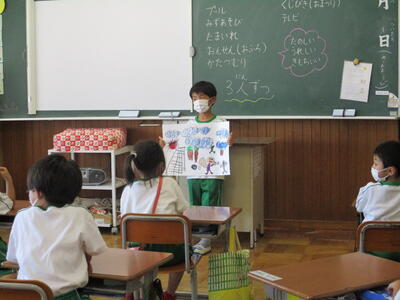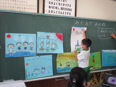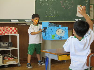 完成した絵をみんなに発表しました。友だちの良いところや,もっと知りたいことなど,たくさんの発表がありました。