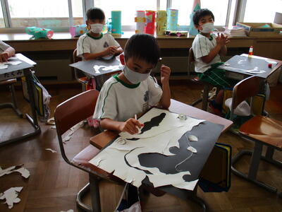 2年生の図工では,「はさみのアート」の学習を行いました。
