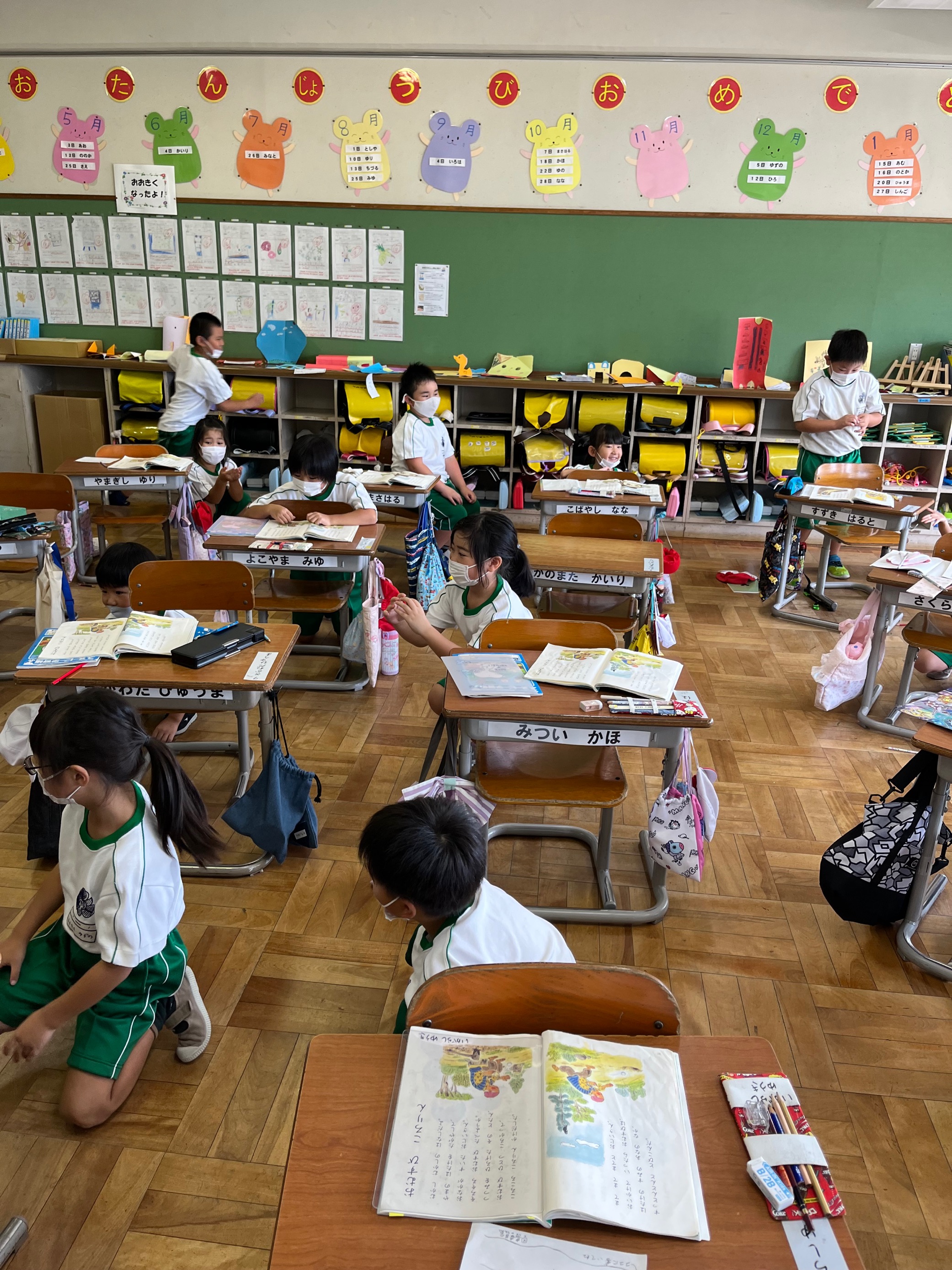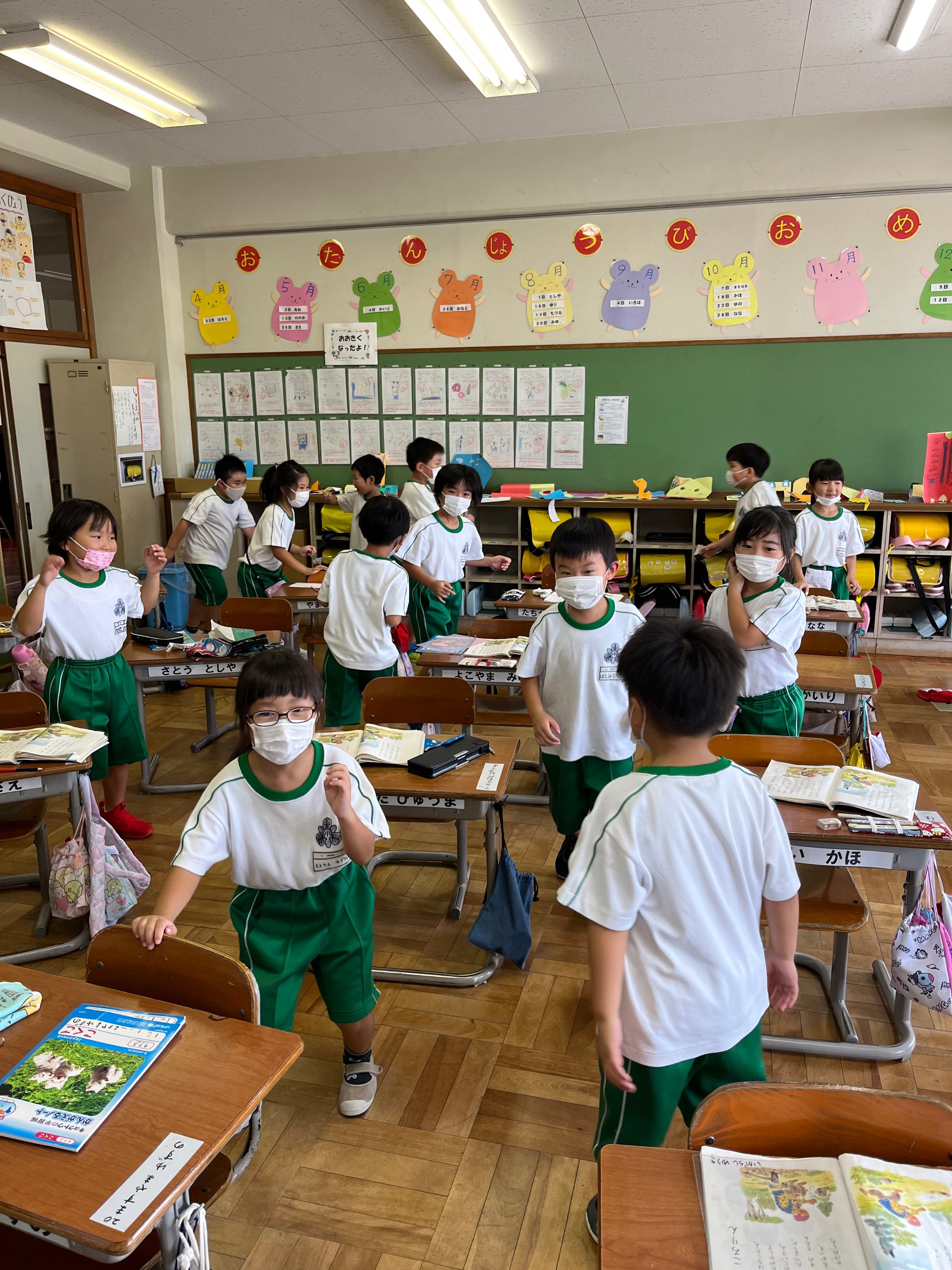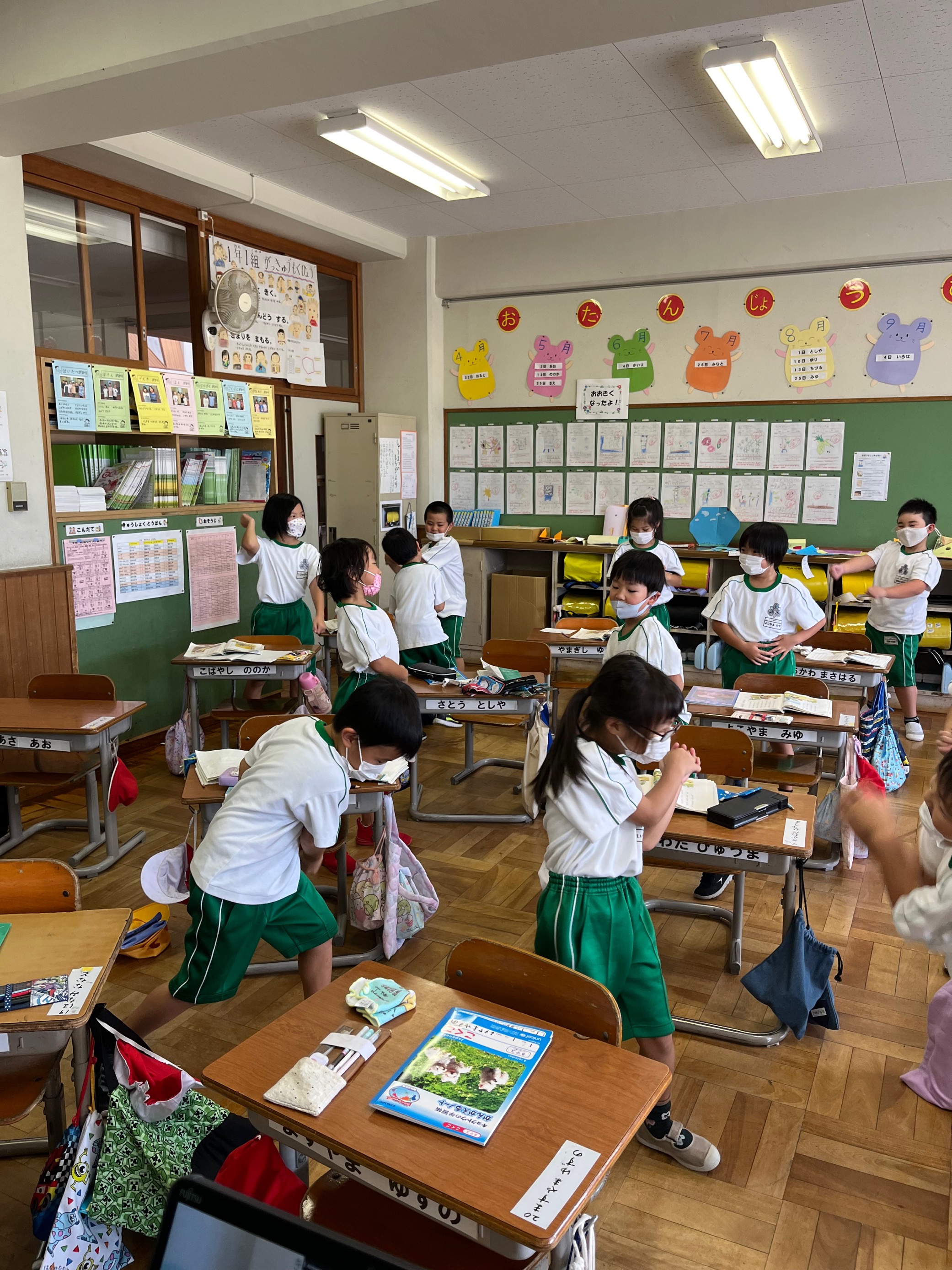 おむすびころりん すっとんとん(1年) 2022年9月1日 18時34分 1年生の国語の学習,「おむすびころりん」のお話です。 文章に合わせて、動作を入れました。お爺さんの役になったり、ねずみの役になったりしました。楽しくて楽しくて。また、元気に音読も出来ました。