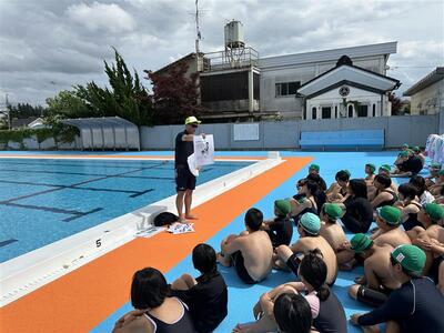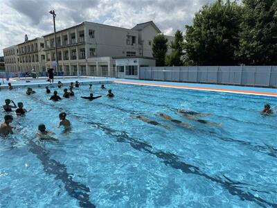 5年生も水泳学習がスタートしました。はじめに、全体でルールを確認してから、水泳記録会に向けてたくさん練習することが出来ました。