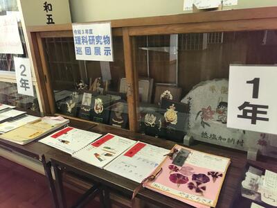 今年度の理科の自由研究で優秀な成績をおさめた作品が二小に巡回展示されています。期間は明日までです。