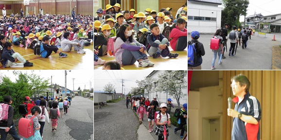 5月6日金曜日の5校時に、地震、台風、大雪などの自然災害や火災、不審者情報などに対応し,児童の安全を守るための集団下校の訓練を行いました。地区ごとの班に分かれて、班長や班のメンバーを確認した後、全体的な指導を行い、高学年の班長を中心に集団下校をしました。児童は、整然と集団下校をすることができ、万が一の時のためのよい訓練となりました。