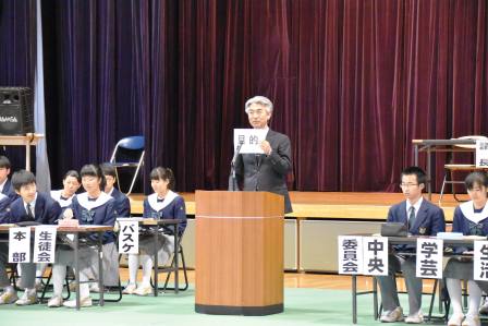 2018年5月14日 16時00分5月14日(月)生徒会総会が行われました。今年度の各委員会や部活動の活動方針・計画について、全校生徒で意見を出し合いました。また総会の中で、生徒会のスローガンが発表されました。平成30年度のスローガンは『Active』~そしてさらなる向上へ~です。喜多方二中は月日を重ねるごとにどんどん良い方向へ変わってきました。これに満足することなく、自分たちの学校生活を自分たちの手でよりよくし、さらなる向上を目指して、積極的に活動に取り組んでほしいと思います。