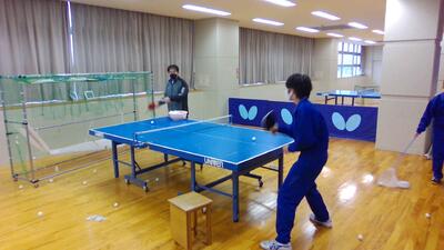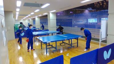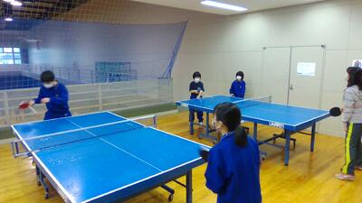 2022年3月31日 10時16分体育館で、卓球部が練習をしていました。曇り空で少し湿度が高いようですが、集中して練習に取り組んでいました。