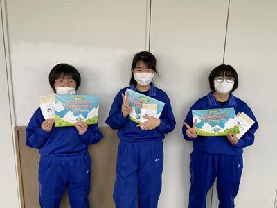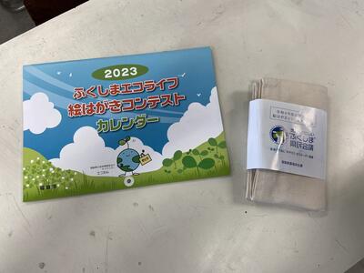 2022年11月29日 16時48分文化部が福島エコハガキコンテストに出品し、参加賞をいただきました。お弁当を入れれそうなエコバッグ、とても素敵です。文化部顧問の須田先生が丁寧に書き方の支援をしていました。ありがとうございます。