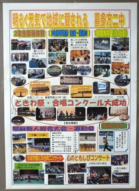 二中生徒の活動のようすをまとめた学校の新しいPRポスター『明るく元気で地域に愛される喜多方二中』が完成しました。