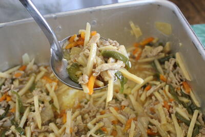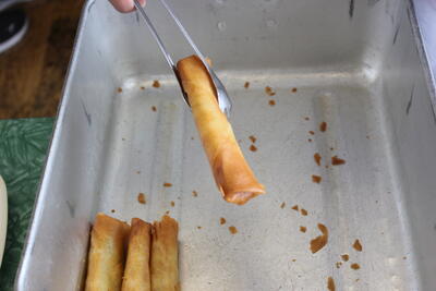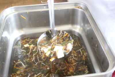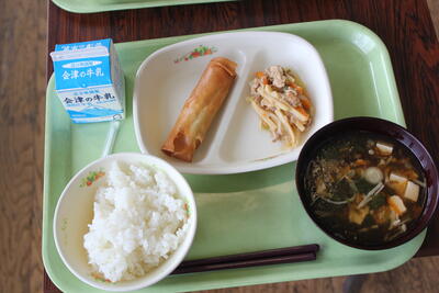 2023年7月10日 12時48分本日の給食は、チンジャオロースー、春巻き、もずくスープです。