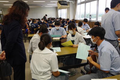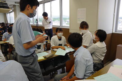 2023年7月11日 09時16分7月10日(月)、3校時~5校時にかけて、喜多方市青年会議所の方々と東京都中野区の青年会議所の方々が、3年生で「模擬請願」の授業を行いました。喜多方市の身近な問題を市に請願するために、個人で課題を発見し、班ごとに課題を練り上げました。青年会議所の方々の説明を聞いて、しっかりと喜多方市の課題を理解することができました。