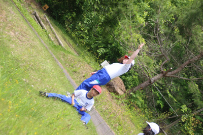 実際に身に付けている服や使っている道具も体験させていただきました。