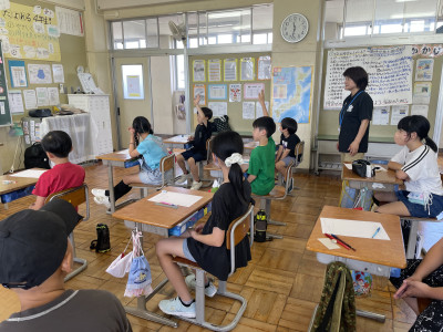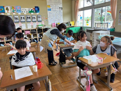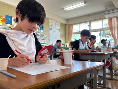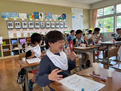 2025年12月5日 15時11分1年生の国語の時間です。教科書にある1枚の挿絵を見て、そこから考えたことをお話にしていました。「ぼくは、うさぎと・・・」みんな思い思いのお話の世界に入っていました。どんなお話ができるのかな?楽しみです。
