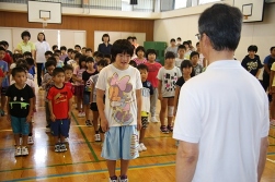 2015年9月2日 20時34分 校内水泳記録会が9月2日(水)に行われました。雨と低温で当日の天候が心配されましたが、朝から晴れ間が見られ、予定通り実施できることになりました。はじめに、8:20に全校児童が体育館に集まり開会式を行いました。その後、8:40から高学年の部、9:50から低学年の部、11:00からは中学年の部と、ブロックごとの児童の実態に応じた種目を設定し、記録会が行われました。