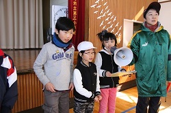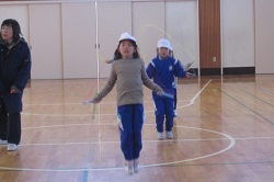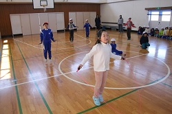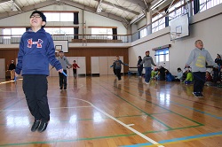 2017年2月28日 15時33分 2月28日(火)の昼休みに1~3年生の縄跳び大会が行われました。当初の計画では2月22日の予定でしたが、インフルエンザ感染者が多かったため1週間程度の延期となりました。大会の企画・運営は児童会の運動委員会が行い、学年毎に短縄とびを3分間でどれぐらい長く続けられるかを競います。3分間以上跳べれば何人でも優勝となりますが、チャンスは1回だけです。はじめに1年生から行い、続いて2年、3年と行いました。詳しい様子については「活動のようす」のページにアップしましたので、そちらもご覧ください。