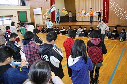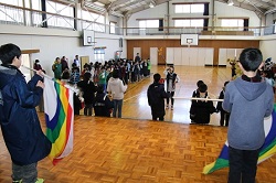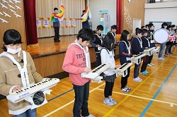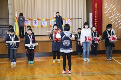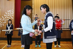 2017年3月2日 12時17分 3月2日(木)の朝、6年生から5年生以下の学年で編成された新しい鼓笛隊への引継ぎとなる「鼓笛移杖式」が行われました。はじめに校長先生から6年生への感謝の言葉と5年生以下人たちへの激励のお話がありました。続いて6年生が入ったこれまでの編成での鼓笛隊演奏を行いました。その後、主指揮の指揮杖を6年生から5年生に引き継ぐ「移杖」が行われ、最後に在校生の編成による鼓笛演奏が行われました。なお、詳しい様子については「かつどうのようす」のページにアップしましたので、そちらをご覧ください。