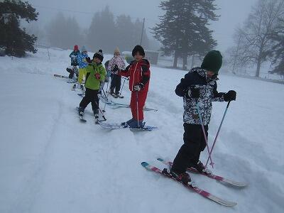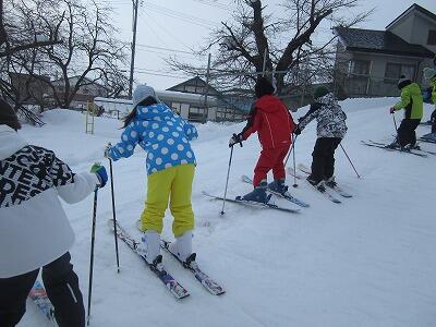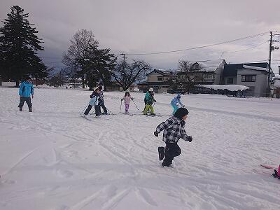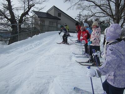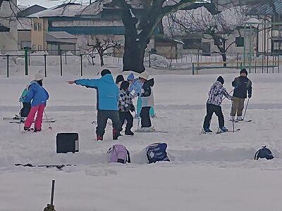 校庭でスキーの練習に取り組みました。
