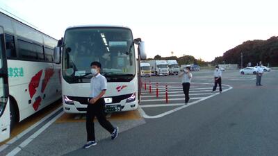 2022年9月29日 17時21分9月29日(木)、修学旅行3日目、東北道那須高原PAを午後5時20分に出発しました。学校到着予定は午後7時00分の予定です。予定より30分早まります。よろしくお願いします。写真は2号車と3号車の様子です。