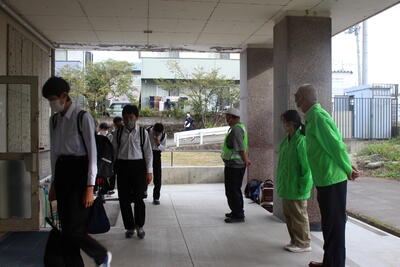 2022年10月4日 16時41分10月3日(月)、第三地区市民育成会議のみなさんが、朝のあいさつ運動のために本校にお越しになり、昇降口であいさつ運動を行っていただきました。三中生の元気なあいさつが響き渡りました。