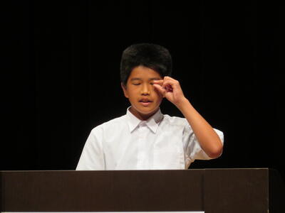 2023年8月30日 13時06分今日は喜多方プラザで耶麻地区中学校英語弁論大会が行われました。本校からは2年生1名が暗唱部門に出場しました。夏休みに英語担当やALTの先生から指導され真面目に練習に取り組んでいました。今日はその成果を発揮し、素晴らしい発表をすることができました。