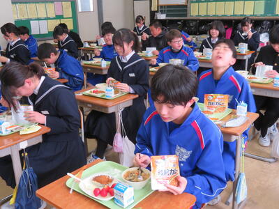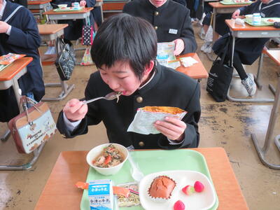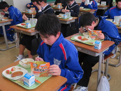 2024年3月7日 13時13分今日の給食は防災給食でした。救給カレーは、非常食で地震や災害に見舞われた際、給食が食べられなくなった時の為に学校で備蓄しています。非常食は命をつなぐものです。食べる経験をしておくことで、万が一のときも抵抗なく食べられるよう慣れておくことが大切ですね。