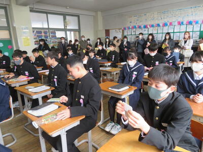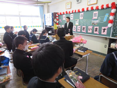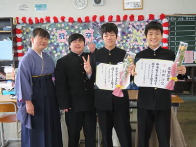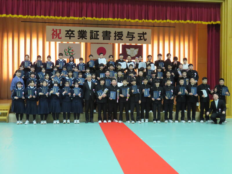2024年3月13日 13時30分今日は、23名の来賓の方にお越しいただき、卒業証書授与式を行いました。64名が学び舎を巣立っていきました。在校生、教職員全員で心を込めて送り出すことができました。今後、さらに活躍してくれることを祈っています。保護者の皆様には心からお祝い申し上げるとともに、これまでの本校教育活動へのご理解ご協力に感謝申し上げます。