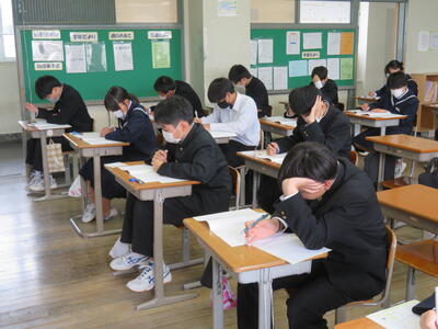 2024年5月9日 15時39分今日は1・2年生が「ふくしま学力調査」を行いました。この調査は、生徒一人一人の学力の伸びや学習等に対する意識、生活の状況を把握するために行います。1校時目に国語、2校時目に数学、3校時目に質問調査を行いました。みんなが真剣に取り組んでいる姿が素敵でした。