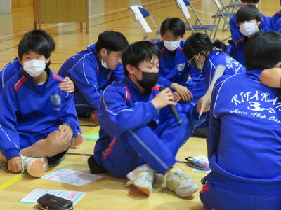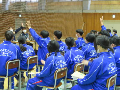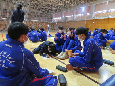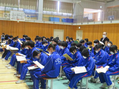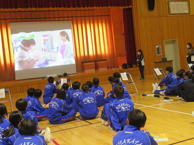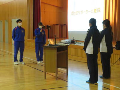 5・6校時目は3年生が認知症サポーター養成講座を行いました。喜多方市地域包括支援センターより佐藤恵様、荒川祐子様を講師としてお迎えし、認知症の症状や認知症の方との接し方などを教えていただきました。
