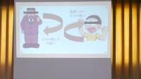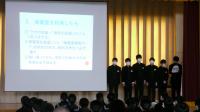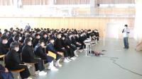 まず、生徒会長に続いて「いじめ撲滅宣言」を全員で唱和し、「さわやか三中生」の実践を約束しました。生徒指導担当の教師が、自身の中学時代に受けたいじめ体験を語り、大人になっても心の傷は消えないことを学びました。