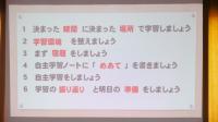 最後に、三中学区で共通実践している「学習ルール10か条」「家庭学習6つのポイント」を確認し、来週から始まる本格的な授業に向けて意識を高めました。学習担当の教師からも、自身の挫折した経験が語られ、人のせいにせず自分に矢印を向けて勉強を頑張ってほしいとエールを送りました。
