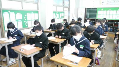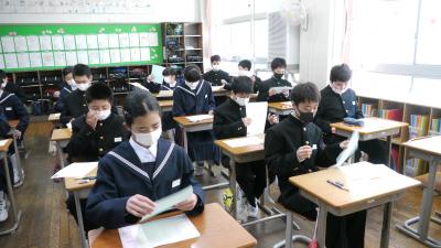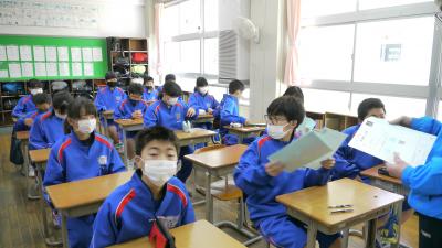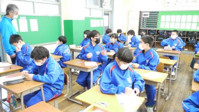 2021年4月21日 11時12分4月21日(水)の1・2校時、1年生と2年生がふくしま学力調査(国語、数学・算数)を行いました。各学級とも真剣に問題を解いていました。3校時は意識調査を行いました。掲載の写真は、意識調査の用紙を配る際の写真です。