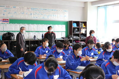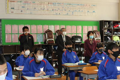 2021年11月1日 18時05分11月1日(月)、学校運営協議会の委員の方々が、授業参観と給食の試食を行いました。喜多方市では、今年度から市内全ての小中学校で、学校運営協議会制度を取り入れ、社会に開かれた学校作りに取り組んでいます。本校でも、委員の方々からの「今の喜多方三中をもっと知りたい」との要望を受け、授業参観と給食の試食会を実施し、校長と意見の交換を行いました。