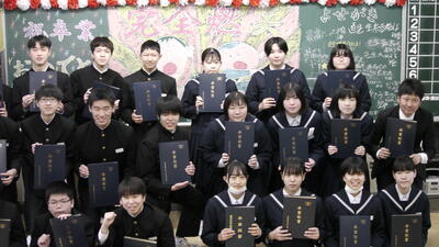 2022年3月18日 16時21分3月18日(金)、もうひとつの卒業式を実施しました。先週の卒業式当日、出席することができなかった生徒のために、卒業した同級生も集まりました。最後は学級で集合写真を撮影し、ようやく3年生55人が喜多方三中を巣立って行きました。来てくれた卒業生、本当にありがとう!喜多方三中は最高の学校です!!
