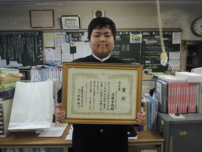 3年生佐藤君「会長賞」受賞!おめでとうございます。