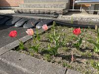 2022年4月12日 13時35分昨日、今日の暑さで、まだまだつぼみが固いと思われていた桜が、一斉に咲き始めました。花壇のチューリップも、昨日はひっそりと一輪だけ咲いていたのに、今日は4つに。お近くのお越しの際は、ぜひ校庭南側の桜をご覧になってください。