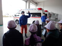 27日(月)に、3年生が社会科の授業で喜多方消防署を見学しました。消防署員さんの話を聞いたり消火体験等をしたりしたことで、消防署ではどのような仕事や工夫をしているのかを知り、自分たちの暮らしが守られていることを実感とともに学ぶことができました。※見学中、実際に救急車が出動する場面もあったようです。
