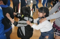 1年生の元気な自己紹介の後、「堂島妖怪学校へようこそ」や「じゃんけん列車」の楽しいゲームを、全校生で行いました。この会を通して、1年生と他の学年の距離がグッと縮まったようです。