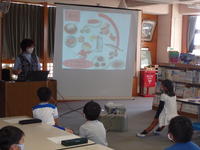 2020年9月30日 16時31分本日、山都小栄養教諭の加藤真理先生をお招きして、1・2年生対象に食に関する指導をティームティーチングで行いました。主に、赤・黄・緑の食べ物は、どんな働きをしているかを加藤先生に教えていただき、その後グループに分かれて、バランスの良い朝食について考える学習をしました。元気な体をつくるためには、「好き嫌いをしないでしっかり食べることが大切だと思う。」という感想をもつことができました。