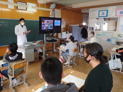 6年生では保健の学習で、生活習慣病について学習をしました。今日は三春町のみはる調剤薬局の濱田雅博先生を講師にお招きし、講話をしていただきました。専門的な立場から、6年生にも分かりやすいイラストや図で説明をいただきました。子ども達も、「糖分や塩分、脂肪分の多い物を食べ過ぎないようにしたい。」「バランスの良い食事を心がけ、適度な運動をするようにしたい。」と生活習慣病の対策を考えることができていました。