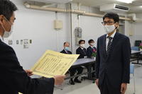 12月4日(金)に、会津若松合同庁舎にて教育・文化関係表彰伝達式が行われ、堂島小学校父母と教師の会がこれまでのPTA活動を評価され、表彰を受けました。新型コロナウイルス感染症対策で各団体1名の出席であったため、PTA会長渡部弘樹さんが出席致しました。19年間に渡る土曜教室を現PTAのみならず、歴代のPTA役員からなる協力体制や、公民館との連携など地域ぐるみの活動が評価されたものです。誠におめでとうございました。