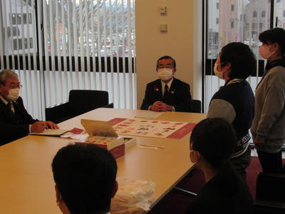 今日は6年生の代表児童2名(花見豊さん、生江愛心さん)が、喜多方市役所でお弁当の完成報告をしました。今まで5年生と協力しながら取り組んできたことを報告し、喜多方市長さんと教育長さんにお弁当を手渡ししました。緊張しながらも、みんなで作ったお弁当の魅力を伝えることができました。
