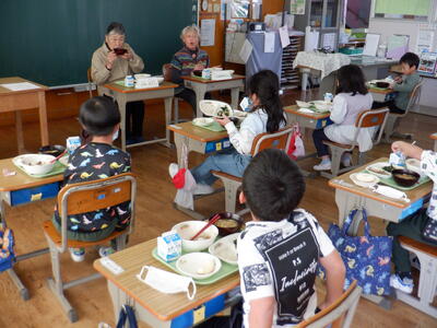 今日の給食は「生産者さんとの試食会」でした。喜多方市教育委員会(以下市教委)主催で、子ども達が学校給食の食材を生産されている方と一緒に給食をいただく事業です。「コロナ後初開催を堂島小学校で」と市教委と話し合いを重ねて、実現しました。遠藤忠一喜多方市長様や市教委の皆さんにもご臨席を賜りました。