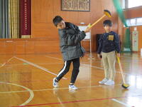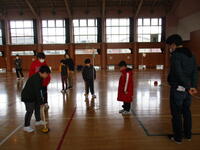 【グランドゴルフ】 ※校庭のコンディションが悪いため、体育館で行いました。