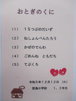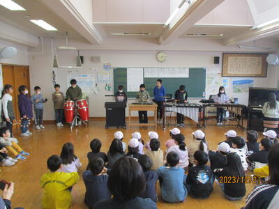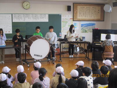 4・5・6年生によるクリスマスコンサートが開催されました。各学年が音楽の時間に練習してきた曲の発表です。堂島っ子1~3年生や先生方、調理員さんも鑑賞にきて、音楽室はコンサート会場のようでした。最後は全員で12月の歌「ジングル・ベル」を歌い、盛り上がりのうちに終了しました。