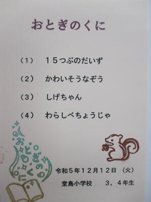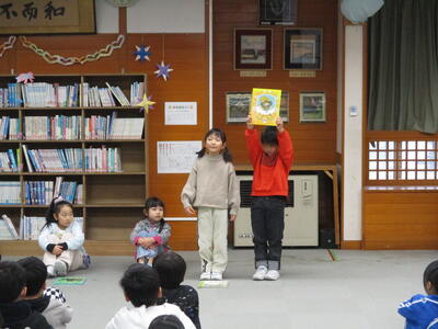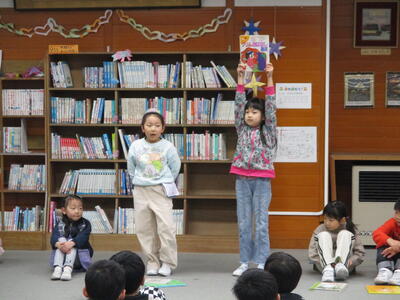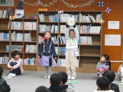 国語科「むかしばなしをよもう」の発展学習として、一人一人おすすめの本を紹介しました。どの子も原稿も見ずにすらすら説明していて、たくさん練習してきたことがよく分かる発表でした。
