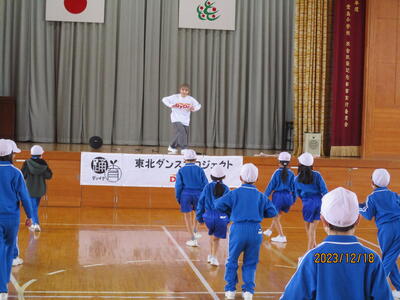 本日、プロダンサーによるリズムダンス授業が全学年対象に行われました。リズム感をアップするためのダンスで、体を動かすことの楽しさを体験できる授業です。同じメロディですが、学年が上がるにつれて少しずつダンスの難易度があがっていました。リズムに合わせて体を動かすのは気持ちがいいのか、どの子も楽しそうに踊っていました。 (必死な顔も・・・)