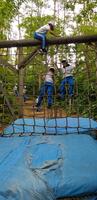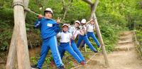 午後の活動は野口英世の生涯をテーマにしたフィールドアスレチックです。高いところに登ったり力を合わせたりと、様々なアスレチックを楽しんだようです。「ひでよー!」「かあさーん!」のかけ声が、山々に響いたことでしょう。たくさん体を動かし、昼ご飯に食べたカレーライス以上のカロリーを消費したようです。班の絆も深まりました。友達のよさ、ありがたさ、協力する楽しさ、一人一人感じたことはたくさんあったと思います。