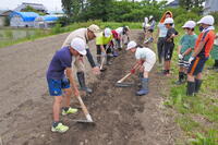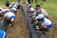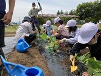 6月に入り、各学年の畑作も始まりました。植えた作物ですが、1・2年生はサツマイモ、3年生は大豆、4年生はカボチャとキュウリ、5年生はニンジン・サトイモ・落花生、6年生はサツマイモ・スイカ・ロロンカボチャ・落花生です。「畑の先生」に教わりながら、どの学年も一生懸命苗植えなどの作業を行いました。しっかり収穫できるように、今は水やりなどのお世話にがんばっている堂島っ子です。「畑の先生」として作業にご協力いただいた5名の皆さん、ありがとうございました。